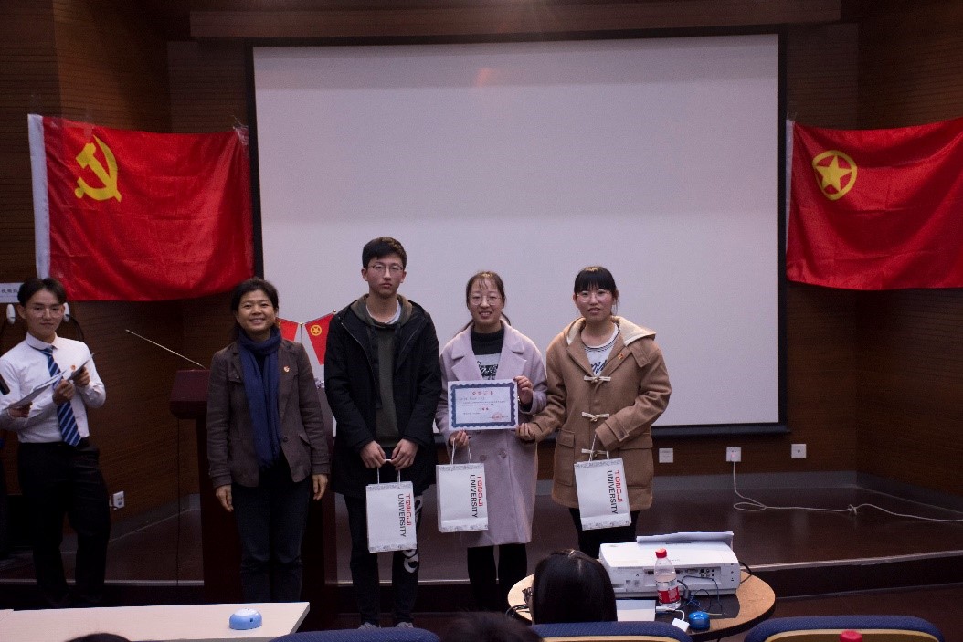 最后,与会老师们为获奖学生颁奖并合影留念,2018年“改革实现梦想,奋斗铸就辉煌——庆祝改革开放40周年”知识竞赛圆满落幕。